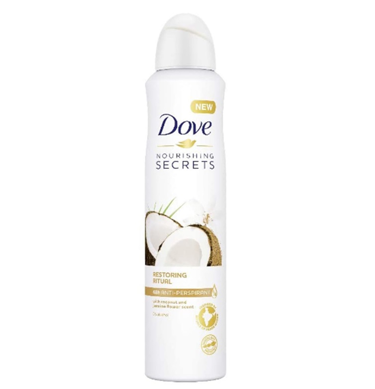 اسپری دئودورانت داو Dove زنانه مدل Restoring Retual رایحه نارگیل و جاسمین حجم 250 میل