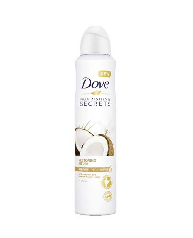 اسپری ضد تعریق زنانه داو مدل Coconut & Jasmine Flower با رایحه نارگیل و گل یاس