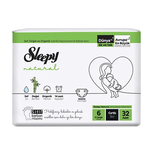 sleepy natural پوشک ارگانیک اسلیپی چسبی سایز 6 بسته 32 عددی